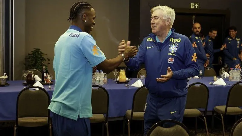 Carlo Ancelotti deu início oficialmente ao seu trabalho à frente da Seleção Brasileira ao receber, neste domingo (2), os primeiros 14 convocados em São Paulo. O encontro ocorreu em um hotel da capital paulista, marcando a estreia presencial do técnico italiano no comando da equipe verde e amarela. Entre os presentes estavam nomes como Vinicius Jr., Bruno Guimarães, Richarlison, Antony e o jovem Estêvão, do Palmeiras.