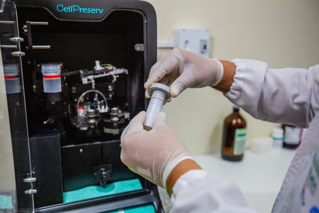 A técnica responsável pelo programa de Saúde da Mulher no Distrito de Saúde (Disa) rural, enfermeira Rosa Cristina Belota, destaca que, além da automatização do processo, que economiza tempo, a transição da citopatologia convencional para a citologia do meio líquido representa uma melhoria na qualidade da amostra coletada do colo do útero, reduzindo o risco de ser necessário refazer a coleta.